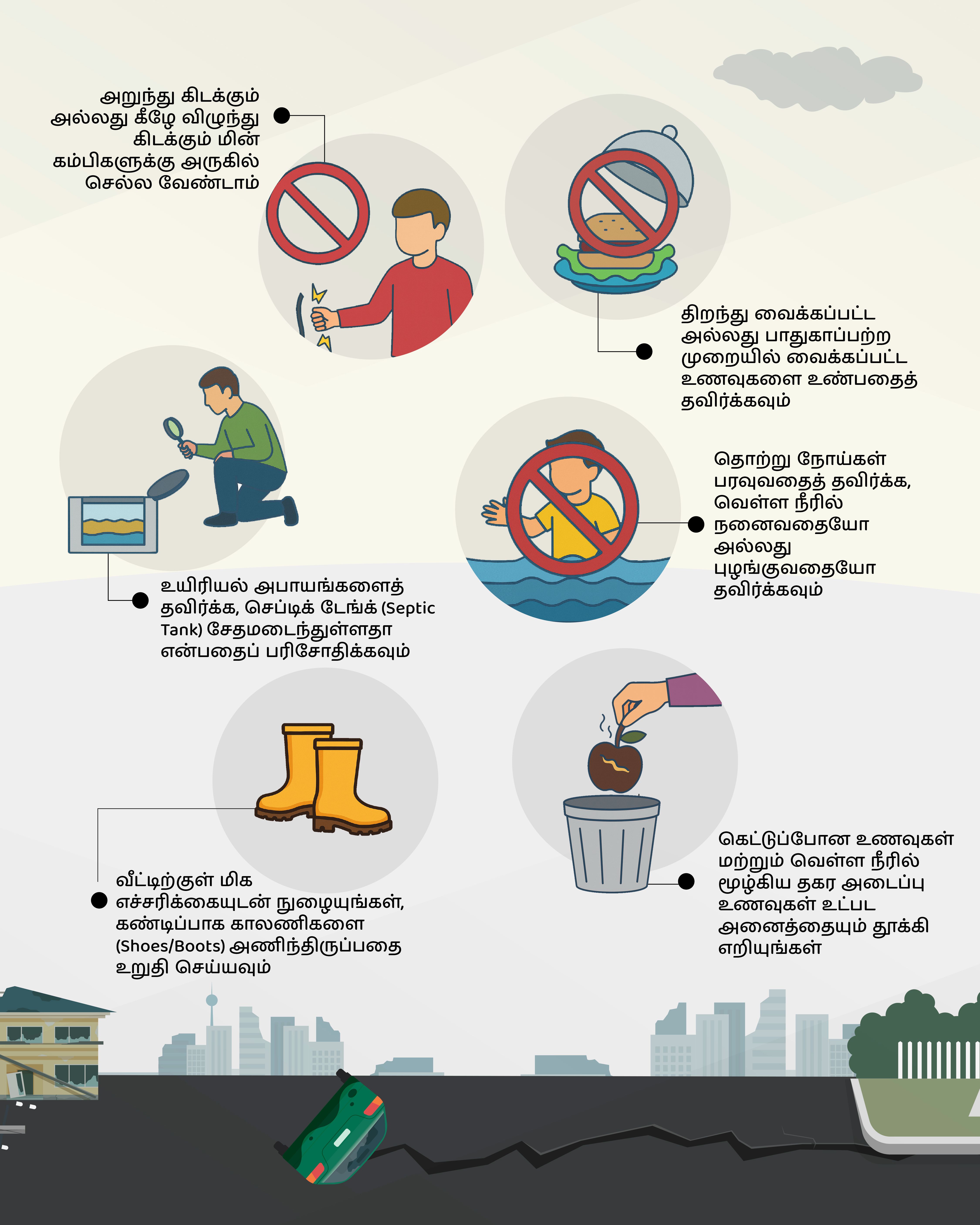 வெள்ளத்திற்குப் பிறகு, உங்களது மற்றும் உங்கள் குடும்பத்தின் பாதுகாப்பிற்காக இந்த உதவிக்குறிப்புகளைப் பின்பற்றுங்கள்.