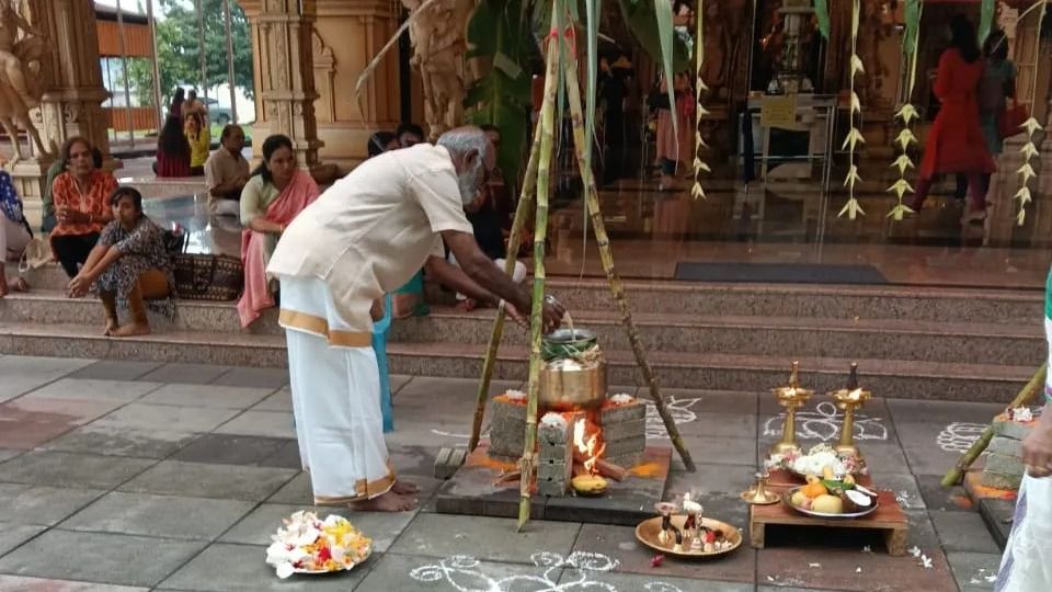 அதிகாலை 7:00 மணி அளவில் ஆலயத்தின் நித்ய பூஜைகளுடன் விழா இனிதே தொடங்கியது. அதனைத் தொடர்ந்து, காலை 8:00 மணியளவில் ஆலய வளாகத்தில் பொங்கல் வைக்கும் வைபவம் நடைபெற்றது.
