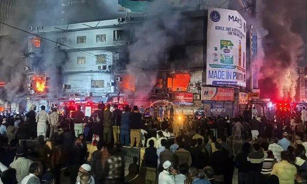 கராச்சி, ஜன 19- பாகிஸ்தானின் கராச்சி நகரில் உள்ள பிஸியான எம்.ஏ.ஜின்னா சாலையில் ‘குல் பிளாசாவில்’ அடுக்குமாடி வணிக வளாகம் அமைந்துள்ளது.