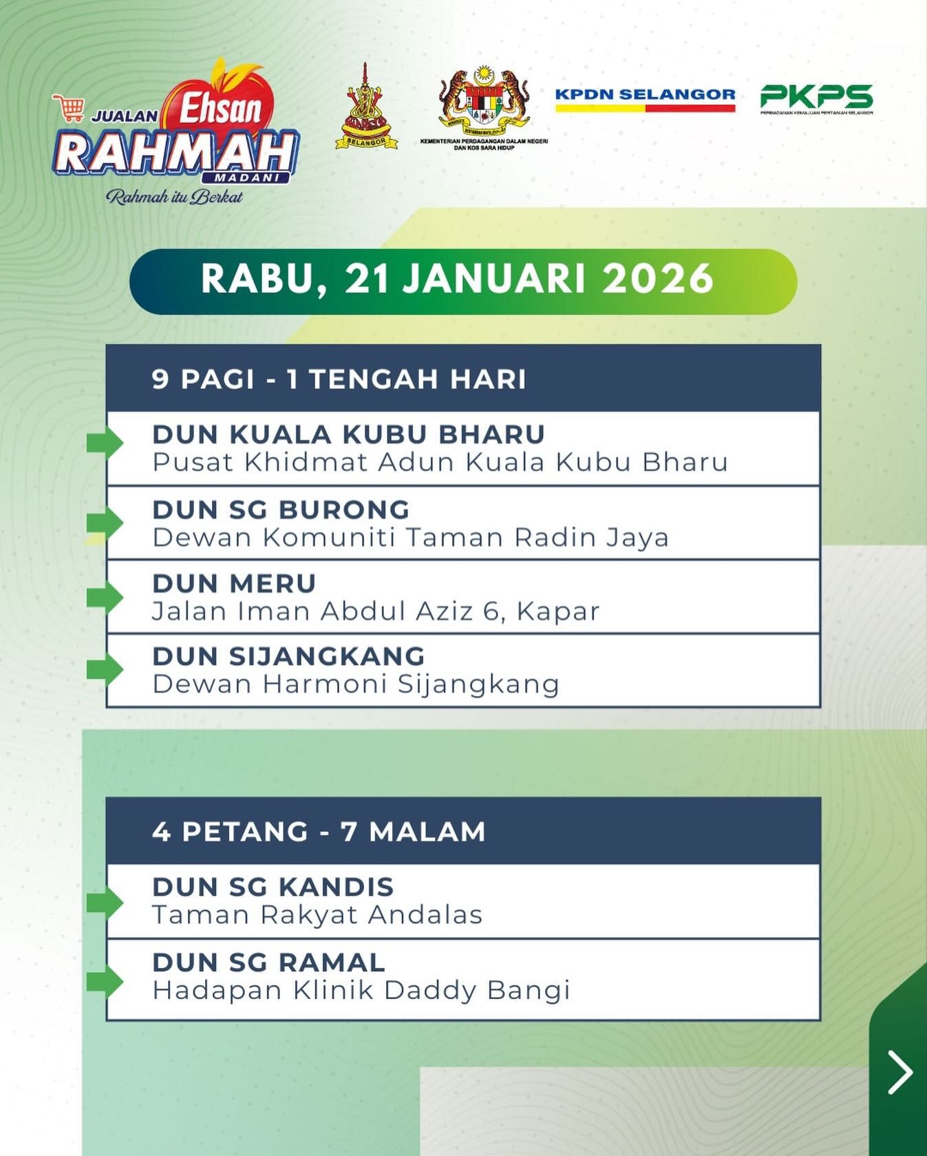 உள்நாட்டு வர்த்தகம் மற்றும் வாழ்க்கை செலவு அமைச்சகத்துடன் இணைந்து சிலாங்கூர் விவசாய மேம்பாட்டு கழகத்தால் (PKPS) இந்த மலிவு விற்பனை நடத்தப்படுகிறது.