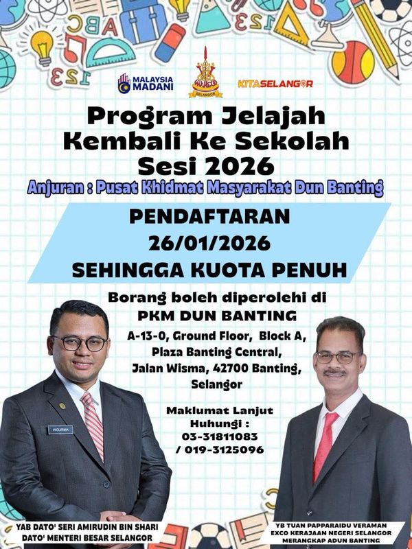 பந்திங், ஜன 22 - மீண்டும் பள்ளிக்குத் திரும்புவோம் 2026, திட்டத்திற்கான விண்ணப்பத்தைப் பந்திங் தொகுதியின் சமூக சேவை மையம் திறந்துள்ளது.