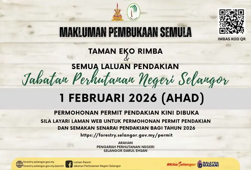 ஷா ஆலம், பிப் 3: சிலாங்கூர் மாநில வனத்துறையின் (ஜேபிஎன்எஸ்) மேற்பார்வையின் கீழ் உள்ள அனைத்து வன பூங்காக்கள் மற்றும் மலை ஏறும் பாதைகள் பொதுமக்களுக்கு மீண்டும் திறக்கப்பட்டுள்ளன.