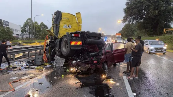 லோரி ஓட்டுநரின் தலையில் பலத்த காயம் ஏற்பட்டது. அதே வேளையில், ஹோண்டா சிட்டி காரை ஓட்டி வந்த 50 வயது மதிக்கத்தக்க ஆடவருக்கு இலேசான காயம் ஏற்பட்டது." "இந்த விபத்தில் ஹோண்டா சிட்டி காரில் பயணித்த 50 வயது மதிக்கத்தக்க பெண் சம்பவ இடத்திலேயே உயிரிழந்தார்.