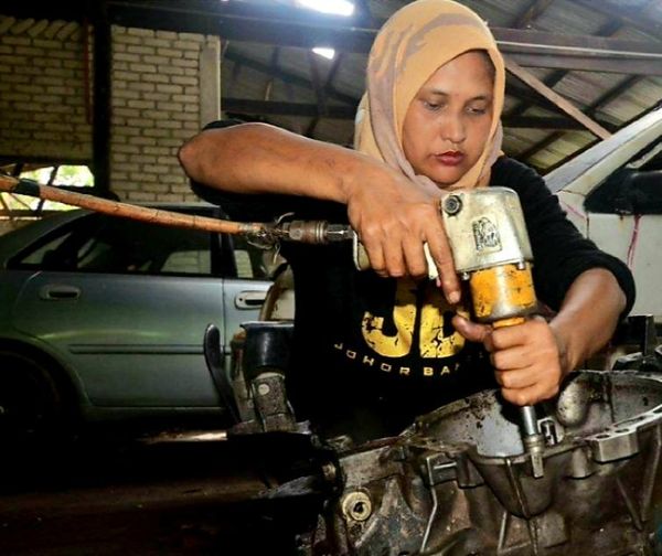 "ஆரம்பத்தில் எனது கணவர், 59 வயதான சஹாரி முகமது சின், வாகனங்களைப் பழுதுபார்ப்பதை நான் பார்த்துக் கொண்டு மட்டுமே இருந்தேன். பின்னர், வீட்டிலேயே அவருக்கு உதவியாக அந்த வேலைகளைச் செய்யத் தொடங்கினேன். நானாகவே ஒரு வாகனத்தின் பழுதான இயந்திரப் பாகத்தைச் சரிசெய்தபோது, வாகனங்கள் பழுதுபார்ப்பதில் என் ஆர்வம் மேலும் அதிகரித்தது," என்று கம்போங் அலோர் சாஜியில் உள்ள தனது பட்டறையில் பெர்னாமாவிடம் பேசியபோது அவர் கூறினார்.