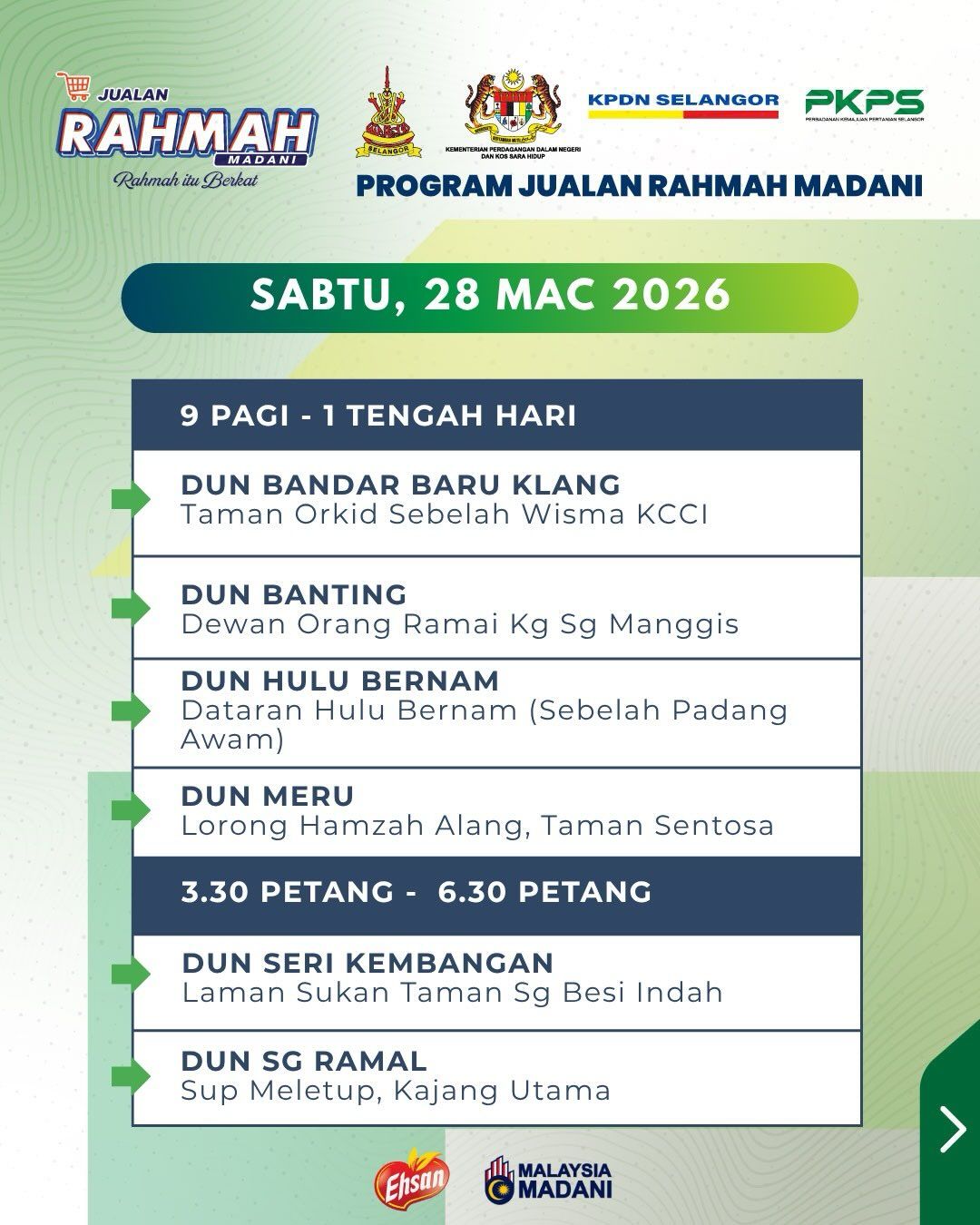 உள்நாட்டு வர்த்தகம் மற்றும் வாழ்க்கை செலவு அமைச்சகத்துடன் இணைந்து சிலாங்கூர் விவசாய மேம்பாட்டு கழகத்தால் (PKPS) இந்த மலிவு விற்பனை நடத்தப்படுகிறது.