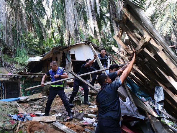 ஷா ஆலம், ஏப்ரல் 10 - கோல சிலாங்கூரில் உள்ள செம்பனைத் தோட்டத்தில் இந்தோனேசிய நாட்டினருக்குச் சொந்தமான 15 சட்டவிரோதக் குடியிருப்புகள், அதிகாரிகள் நடத்திய ஒருங்கிணைந்த நடவடிக்கையில் இடித்துத் தகர்க்கப்பட்டன.