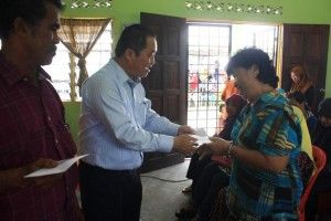 黄瑞林(左二)颁发100令吉开学援助金予其中单亲妈妈,左为南里。 [/caption]