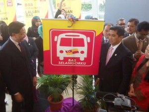 阿兹敏阿里(右)为“我的雪兰莪巴士”标志主持推介礼,左为邓章钦。[/caption]