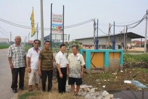 适耕庄一水闸的左边水闸铁支已弯曲,导致闸口无法开关,左起谢明俊、叶培新、黄亚金、叶国民及沈辉。[/caption]