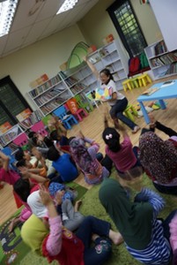 吴佳薇老师用马来文和英文为小朋友说故事。[/caption]