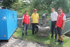 欧阳捍华(右2)视察古腰河的水泵情况。[/caption]