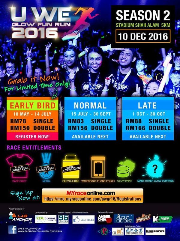 (莎阿南18日讯)“U We Glow Fun Run 2016”慈善义跑将在12月10日举办,有兴趣的民众万勿错失良机!