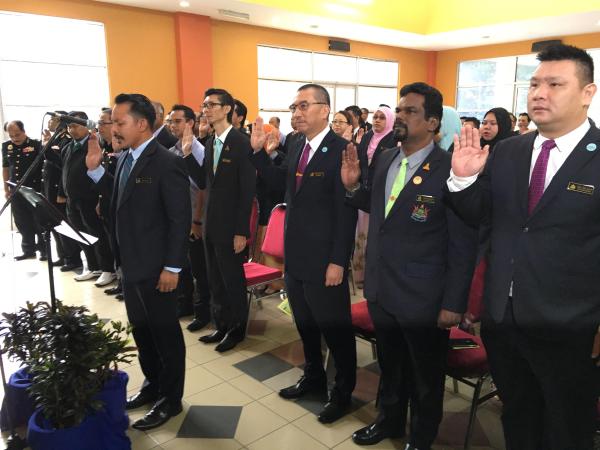 在雪州反贪污委员会主席拿督旺南里和巴生酋长拿督阿都加尼的见证下,巴生市议会秘书阿迪菲查率领18名小组主任、80名行政职员和24名巴生市议员在巴生市议会视听室宣誓,誓言全力打造廉洁的职场环境。