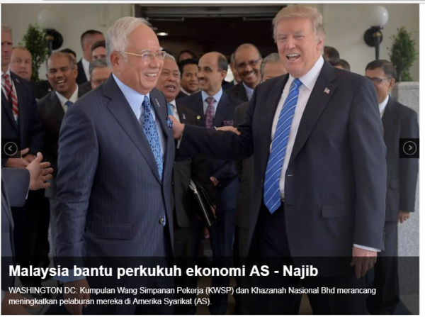 “我们明白纳吉为什么选择到美国拜访美国总统特朗普,但这并不表示领导人就可以典当国家经济福祉,来换取与对方合照的机会。”