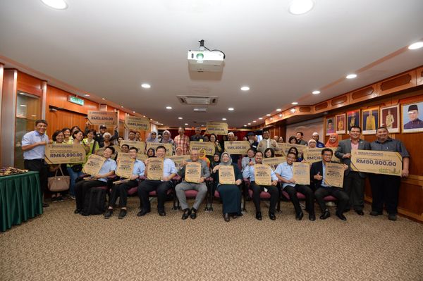 八打灵再也市长莫哈末沙尤迪(中)颁发社区基金给其中一个居民协会的代表。[/caption]
