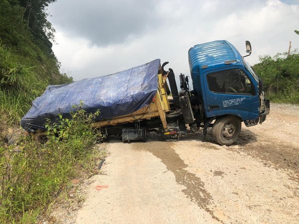 士拉央市议会公关小组主任莫哈末贞表示,执法人员6月1日上午10时巡视鹅唛甘榜双溪布苏的非法垃圾场时,发现有关罗里陷入非法垃圾场路旁的小沟内。