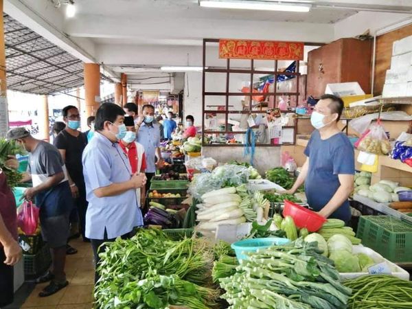雪州行政议员兼加影区州议员许来贤6月2日连同加影市议会主席拿督祖基菲里视察加影巴刹的情况,并向巴刹小贩了解情况。