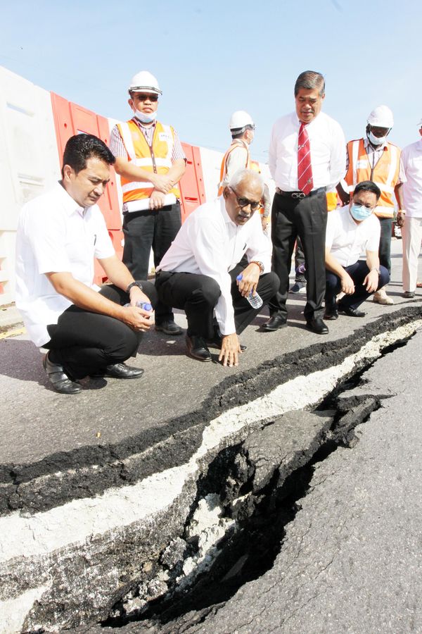 哥打拉惹区国会议员末沙布连同巴生区国会议员查尔斯圣地亚哥7月21日巡视地陷情况,要求有关当局尽快查明地陷真相和采取一切必要的预防措施,以确保道路使用者的安全。