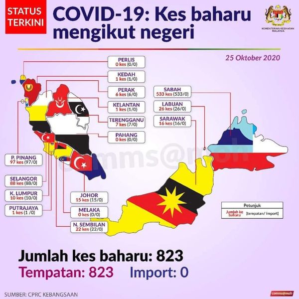 (莎阿南25日讯)国内今日新增823宗新冠病毒确诊病例,且全部属于本土感染病例。