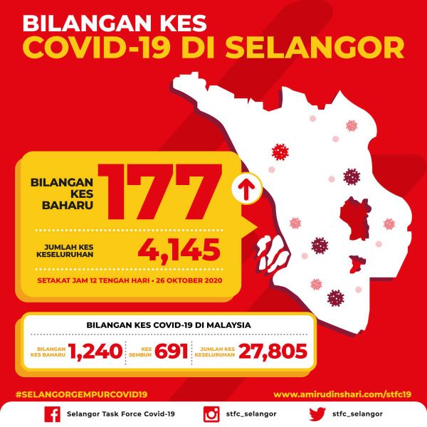 雪兰莪目前累计共4145宗新冠肺炎确诊病例,其中1033宗属于可以传染他人的活跃病例,至今共累计25宗死亡病例。