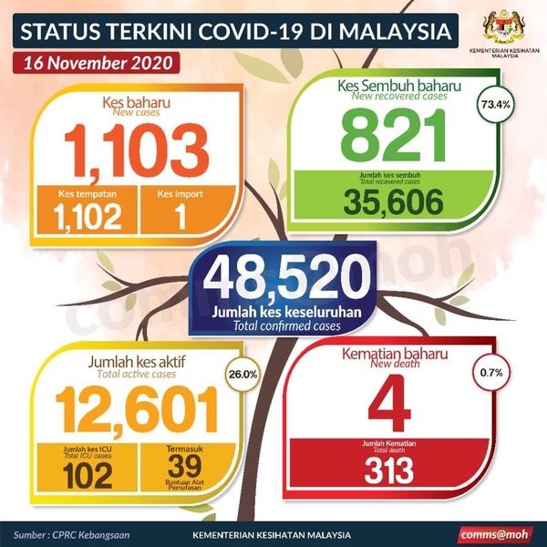 (莎阿南16日讯)我国今日新增1103宗新冠病毒确诊病例,近半数病例在巴生谷通报。