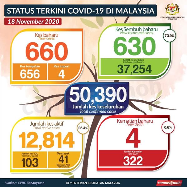 (布城18日讯)我国的新冠肺炎确诊病例在连续5天破千后,今日终于重返三位数,新增660宗确诊病例,累计的确诊病例达5万390宗。