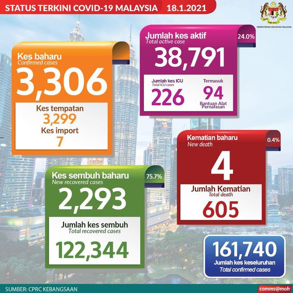(莎阿南18日讯)我国的新冠肺炎确诊病例今新增3306宗,当中7宗为境外输入,累计的确诊病例达16万1740宗!