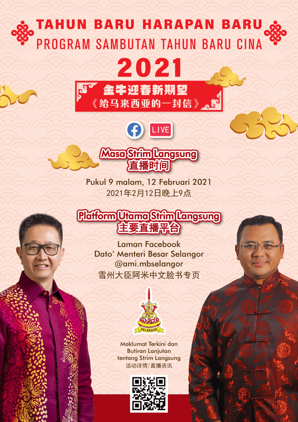 - (莎阿南1日讯)由雪兰莪州政府耗资逾41万令吉精心制作的《金牛迎春新期望》线上春晚特备节目,定在大年初一(12日)晚上9时,通过网上和逾30个社交平台同步全球首播,在疫情下与全马及海外大马华人线上大团圆!