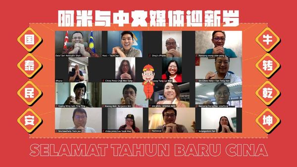 配合农历新年,阿米鲁丁也特穿上朱红色的唐装向线上中文报媒体拜年,出席的媒体包括《星洲日报》、《南洋商报》、《中国报》、《光明日报》、 《东方日报》、《光华日报》,以及《当今雪州》中文组,所有媒体在线上热闹交流及和拜早年。