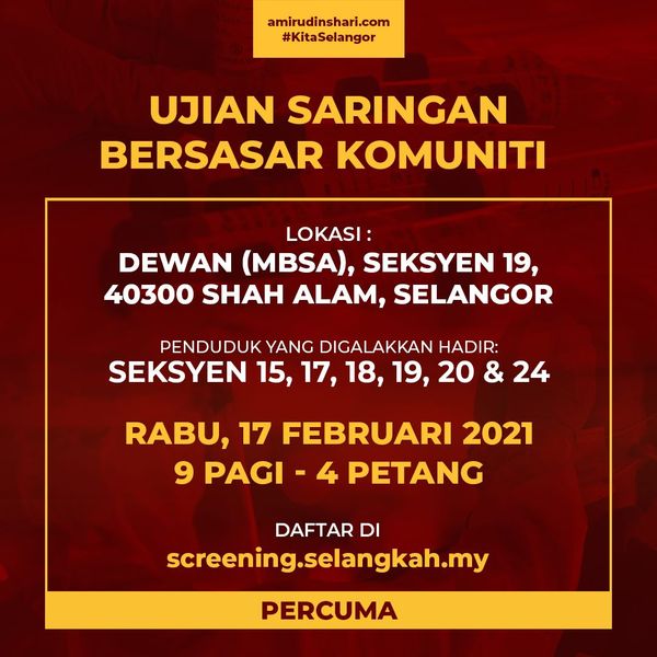 “有兴趣的居民可通过screening.selangkah.my,事先登记,以方便当局作出安排。”