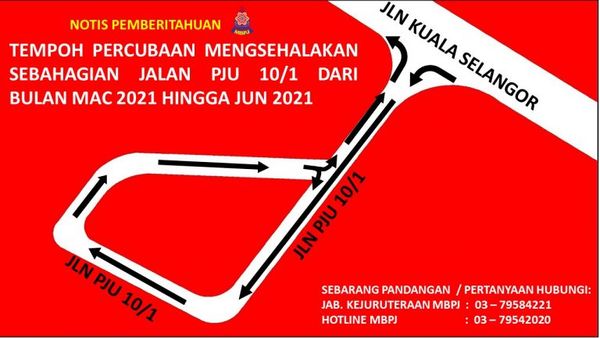 八打灵再也市政厅公关小组表示,PJU 10/1路届时从靠近达迈1国小的交通灯处的瓜拉雪兰莪路改为单向道,市政厅将派出执法人员在场驻守,监察改道后的交通情况和维持交通安全。