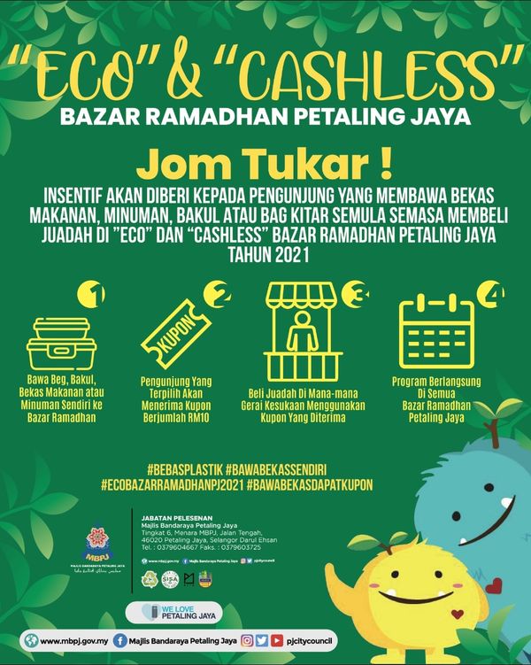 为鼓励大家响应环保,降低对塑胶袋的依赖,迈向绿色城市目标,灵市政厅特配合斋戒月期,于明日(20日)起,在辖内办“环保”与“无现金”交易斋戒月市集。
