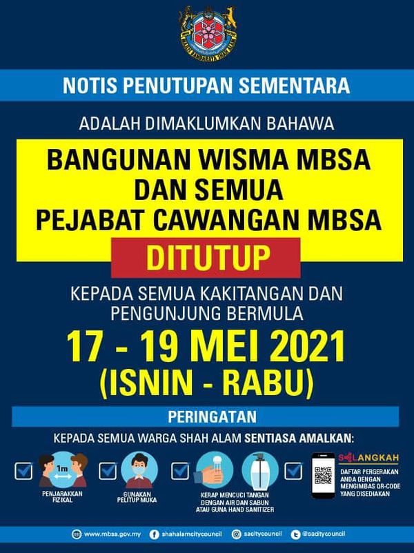 (莎阿南17日讯)莎阿南市政厅总部大厦和各分局即日起至5月19日期间全面关闭。