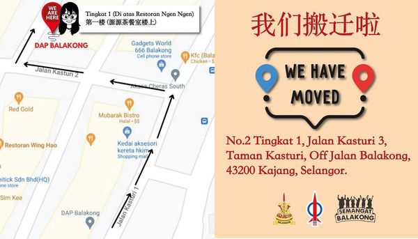 无拉港州议员王诗棋于5月18日,通过个人脸书专页,作出这项宣布,以提醒有需要服务的选民,到新地址寻求帮助。