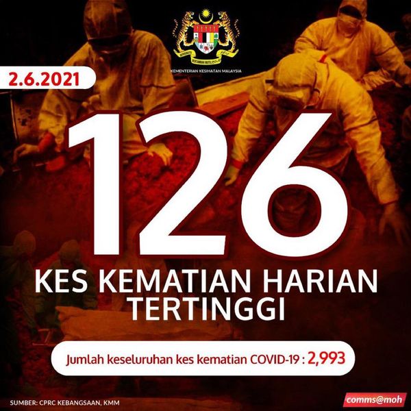 (莎阿南2日讯)新冠肺炎死亡病例再刷高新记录,今日夺126人命,累计死亡病例2993宗(0.51%)。