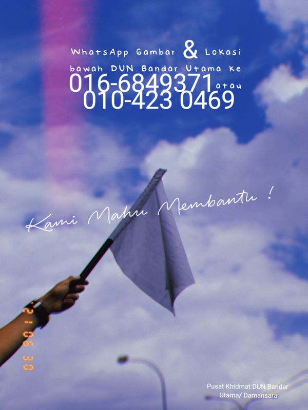 如果民众看到万达镇州选区一带的房子挂起了白旗,可通过图片和地址/位置(waze、goolge/实际地址)分享至 jamaliahdap@gmail.com ,或 Whatsapp 至: 016-684 9371/010-423 0469通知们。