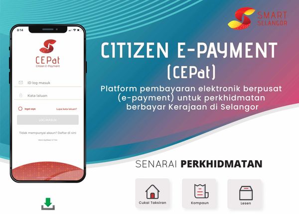 “CEPat”(Citizens Electronic Payments Platform )由精明雪州传递单位(SSDU)所研发,让民众通过该平台缴交罚款或门牌税,并以JomPay、电子银行或其他电子钱包方式付费。
