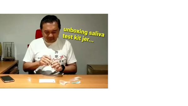 雪州行政议员黄思汉7月22日在脸书专页,就开箱测试了一款唾液抗原快速检测试剂盒(Covid-19 AG Saliva Home Kit)。