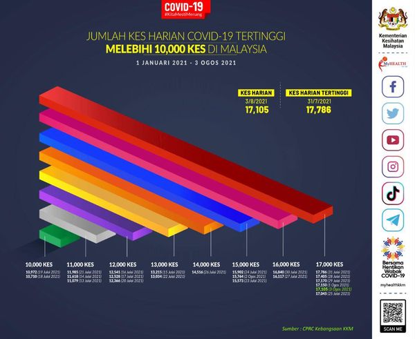 据卫生总监丹斯里诺希山8月3日发布的数据图,雪兰莪州虽仍是最高病例的州,报5836宗,惟相较昨日6067宗,略为下降。