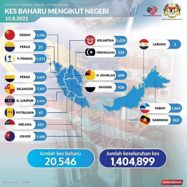 卫生总监丹斯里诺希山8月15日在脸书发布我国的单日确诊数据,其中雪兰莪的新增病例再次回升,报7307宗,仍是新增病例最高的州属,昨日则报6606宗。