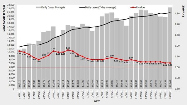 (莎阿南18日讯)全国新冠肺炎病毒基本传染数值(Ro)保持平稳,于8月18日报1.04,其中雪州传染基数下降至少于1.0,报0.99。