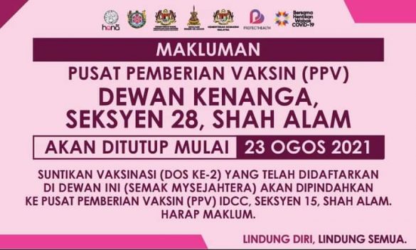 (莎阿南23日讯)莎阿南第28区肯那雅礼堂新冠疫苗接种中心于今日起关闭,通过该中心接种第2剂疫苗者,受促前往第15区的IDCC会展中心赴约。