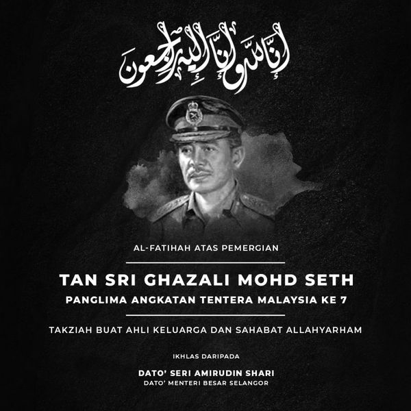(莎阿南25日讯)雪兰莪州务大臣拿督斯里阿米鲁丁向马来西亚武装部队,前总司令丹斯里卡查里家属致哀。