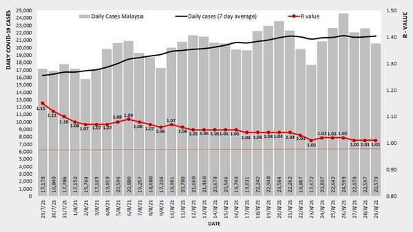 巴生谷范围的雪兰莪、吉隆坡及布城的传染基数皆少于1.00,分别是雪兰莪0.94、布城0.86、吉隆坡0.83。