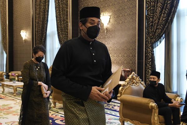 (莎阿南30日讯)我国31位部长及37位副部长正式自国家王宫宣誓入阁,其中1位副部长因确诊新冠肺炎而无法现身国家王宫宣誓就职。