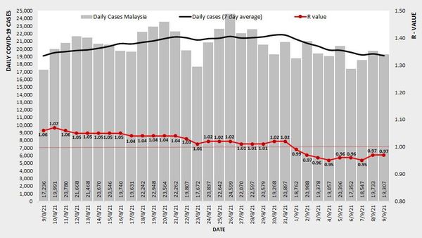 (莎阿南10日讯)我国新冠肺炎单日确诊病例昨日通报1万907宗,全国冠病基本传染数值(Ro)维持在0.97。