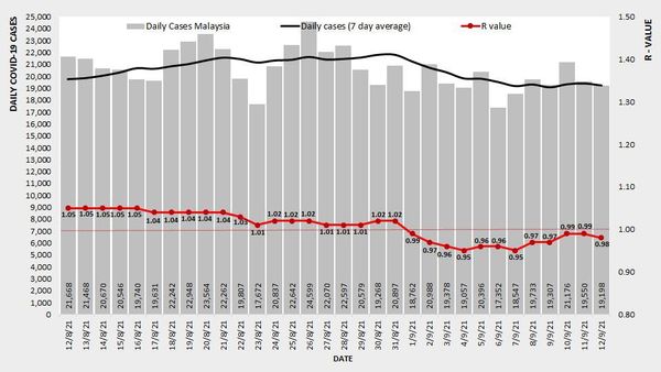 (莎阿南13日讯)我国的新冠肺炎单日确诊病例昨日通报1万9193宗,全国传染基数(Ro)微降至0.98,连续12天低于1.00。