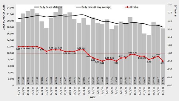 (莎阿南18日讯)我国新冠肺炎单日确诊病例昨日通报1万7577宗,全国冠病基本传染数值(Ro)报0.95。