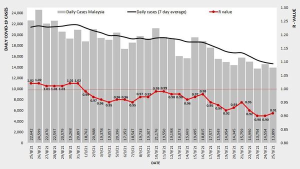 (莎阿南26日讯)我国的新冠肺炎单日确诊病例昨日通报1万3899宗,令全国冠病基本传染数值(Ro)从0.90微升至0.91。