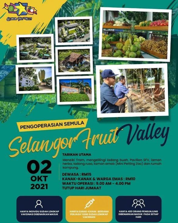 据最新的标准作业程序,雪州水果谷除了每逢星期五关闭外,其他日子天天营业,时间是上午9时至下午4时。